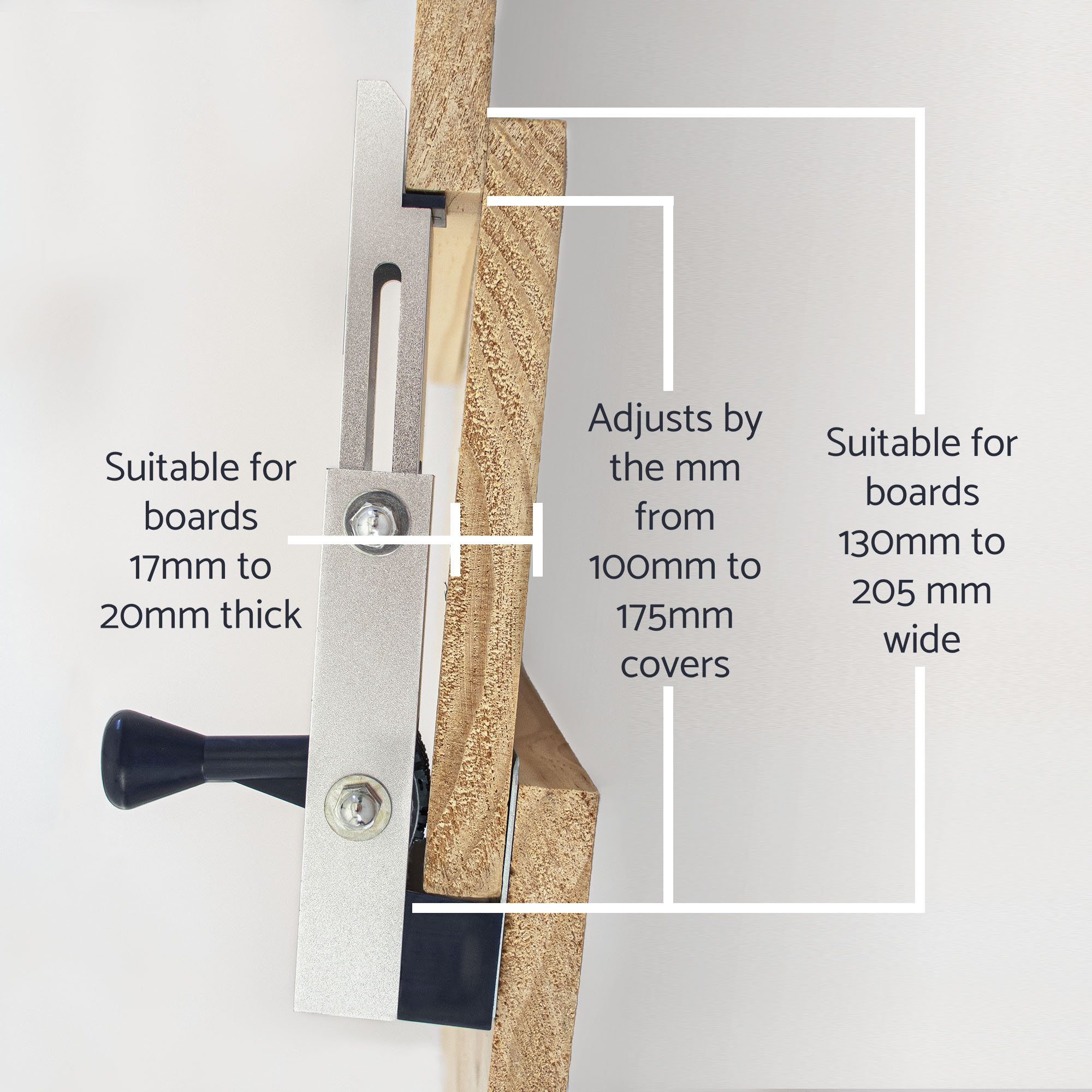 Get the look you want, with the board you want. CladLad Heritage easily adjusts by the mm from 100mm to 175mm covers and is suitable for boards 130 to 205mm wide.